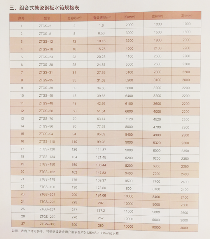 我公司生產(chǎn)的組合式搪瓷水箱采用了先進(jìn)工藝,選用優(yōu)質(zhì)材料,保證水質(zhì)的清潔。而且耐腐蝕、容易清清洗,經(jīng)普通水箱使用壽命長,現(xiàn)場組裝方便、靈活、不易變形、抗震性強(qiáng)、抗攻擊力大。
